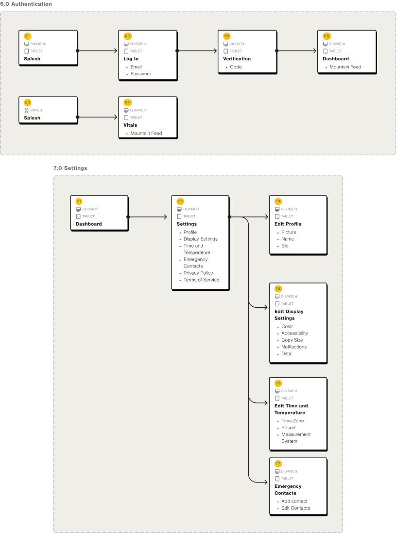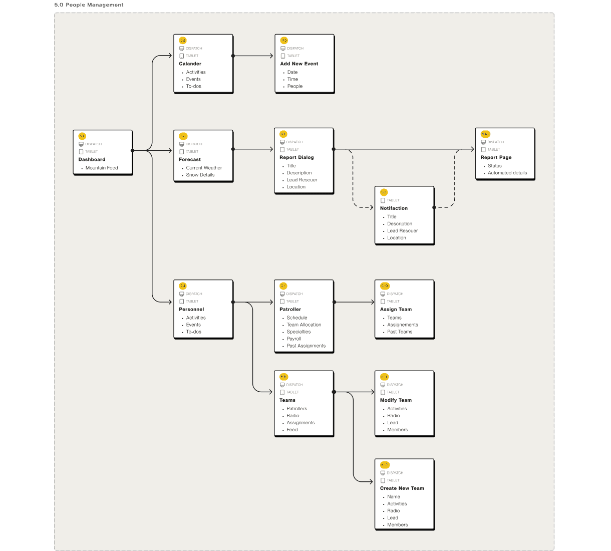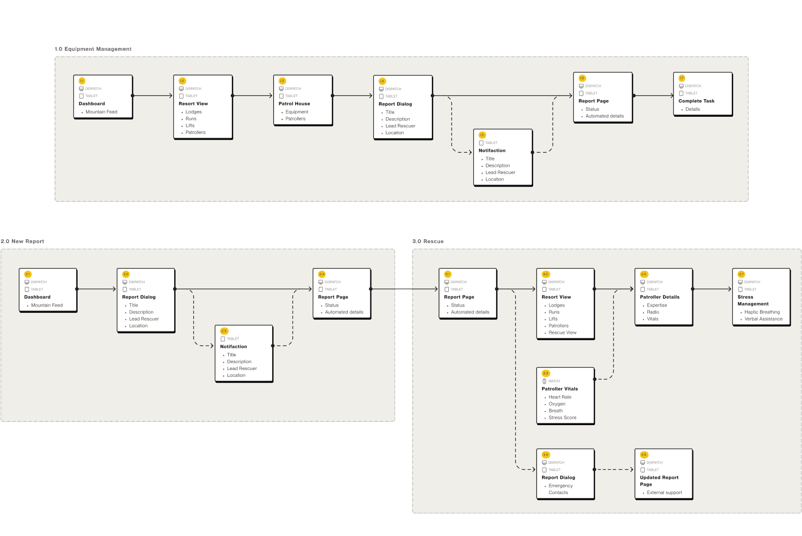 The core flows aim to funnel all of the primary tasks of a mountain patrol through a single dispatch interface. These tasks include –
