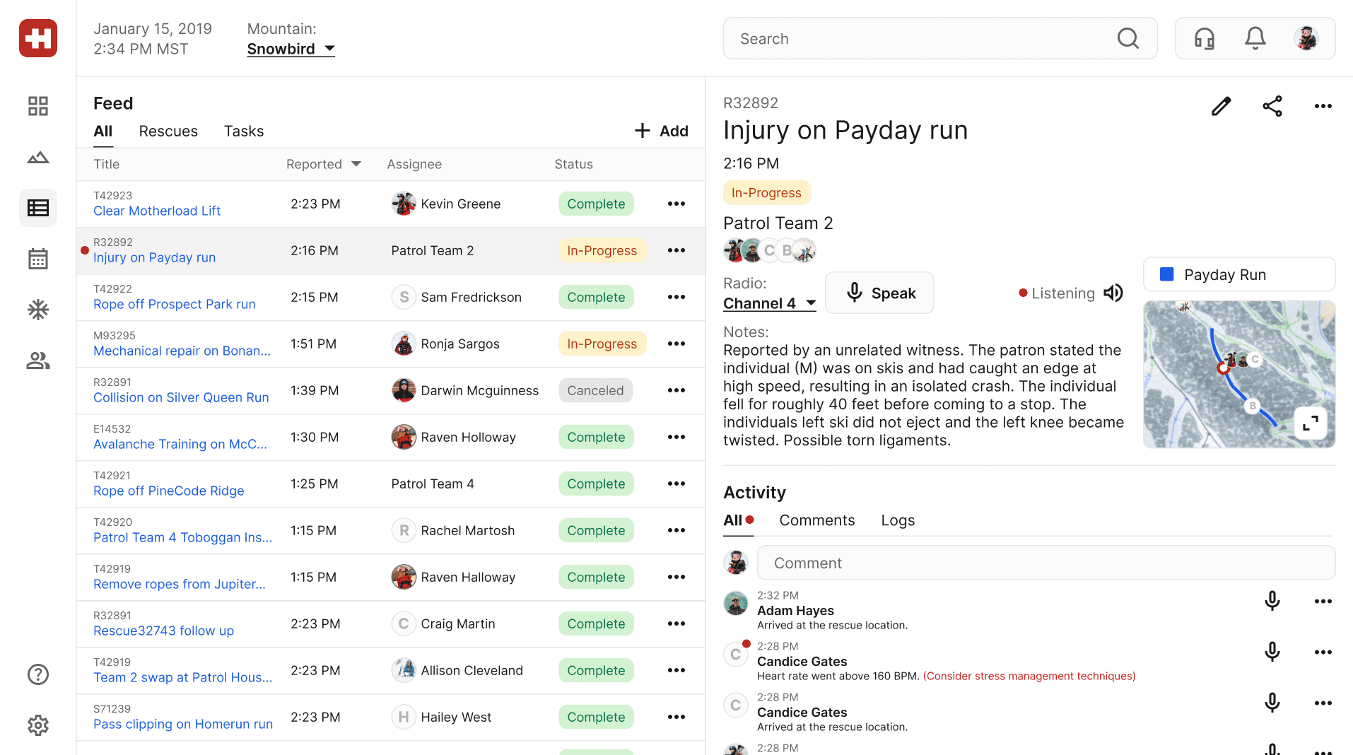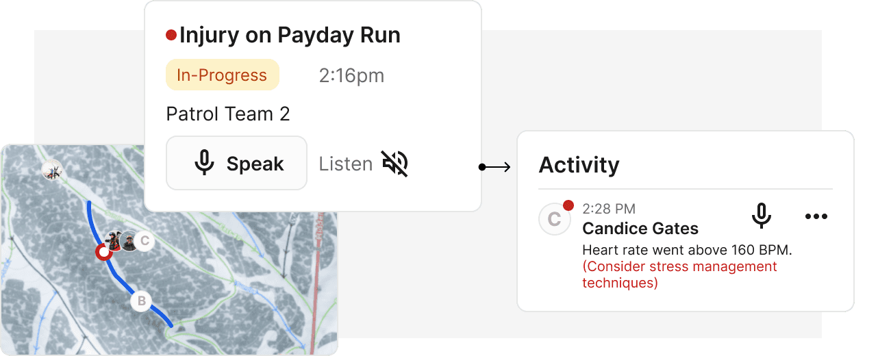 Today, mountain dispatchers rely solely on radio communications for all mountain updates. This burdens rescuers with having to update dispatchers with updates, ultimately adding to the patrollers' tasks and stress.