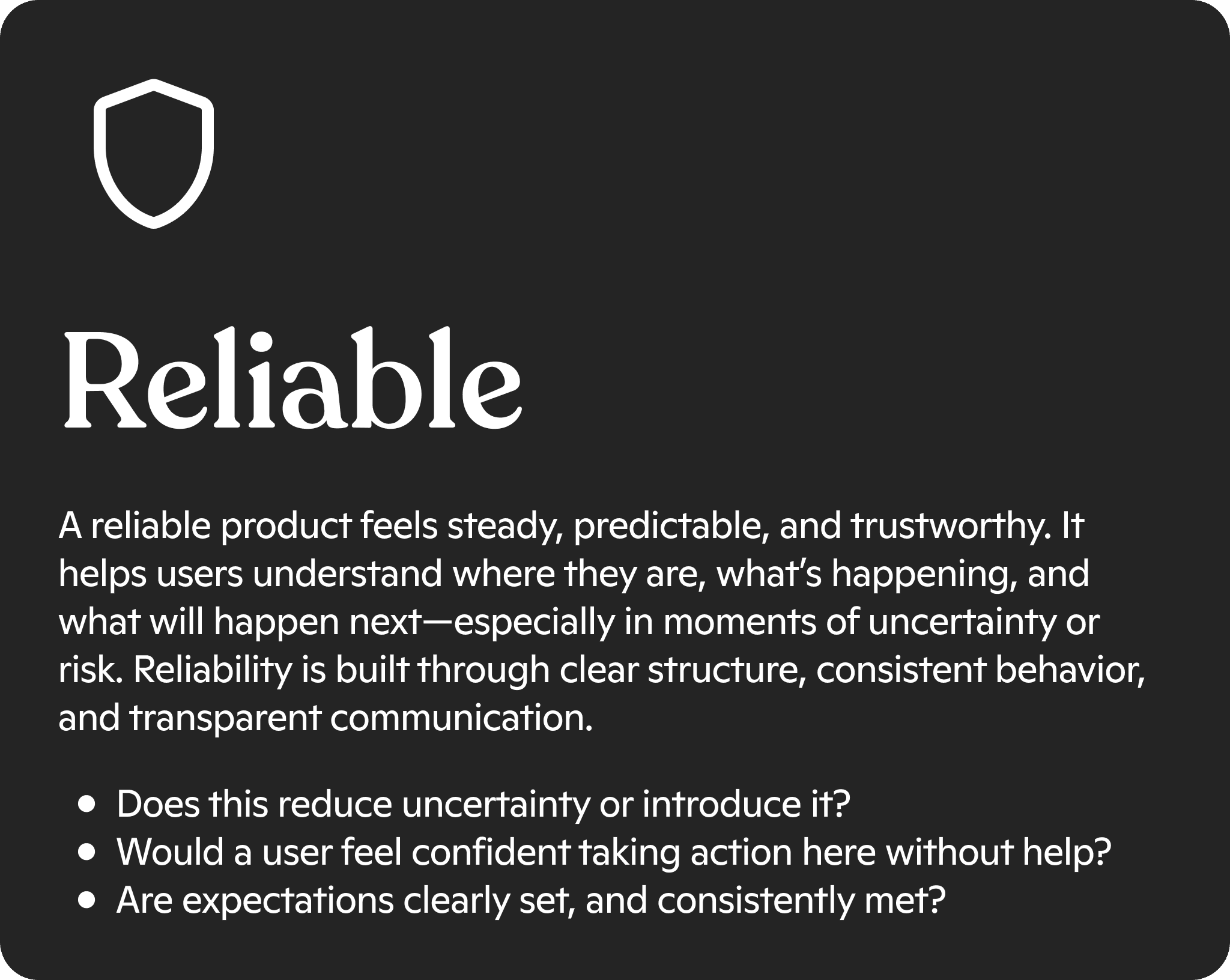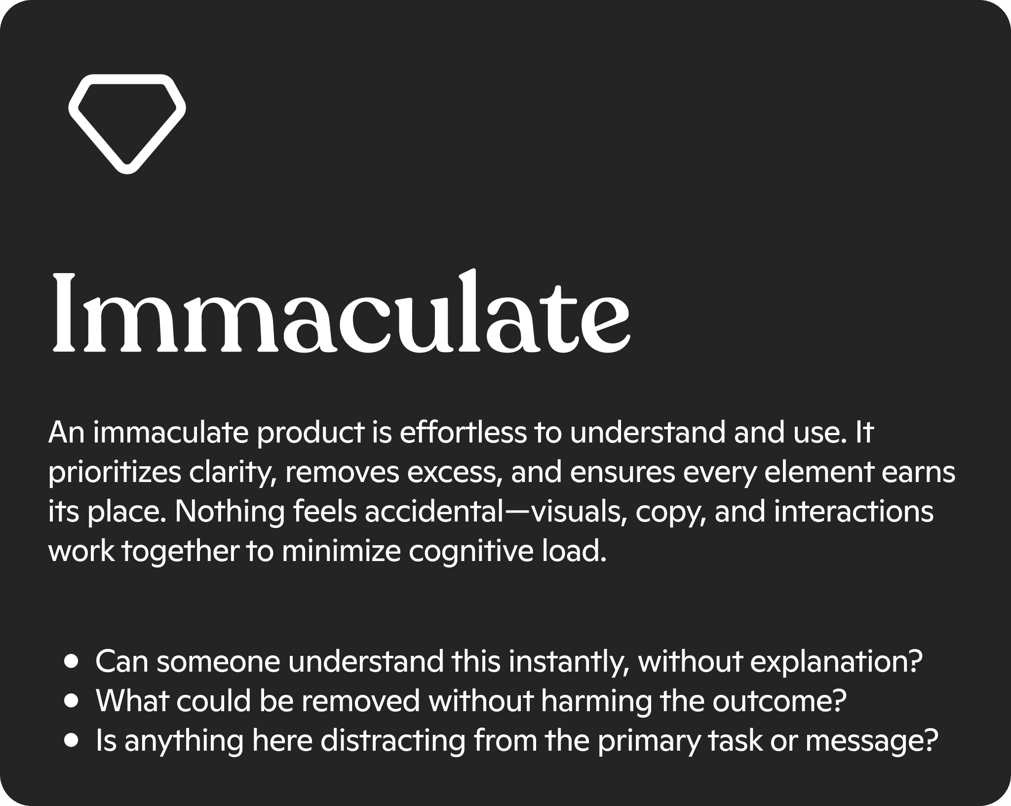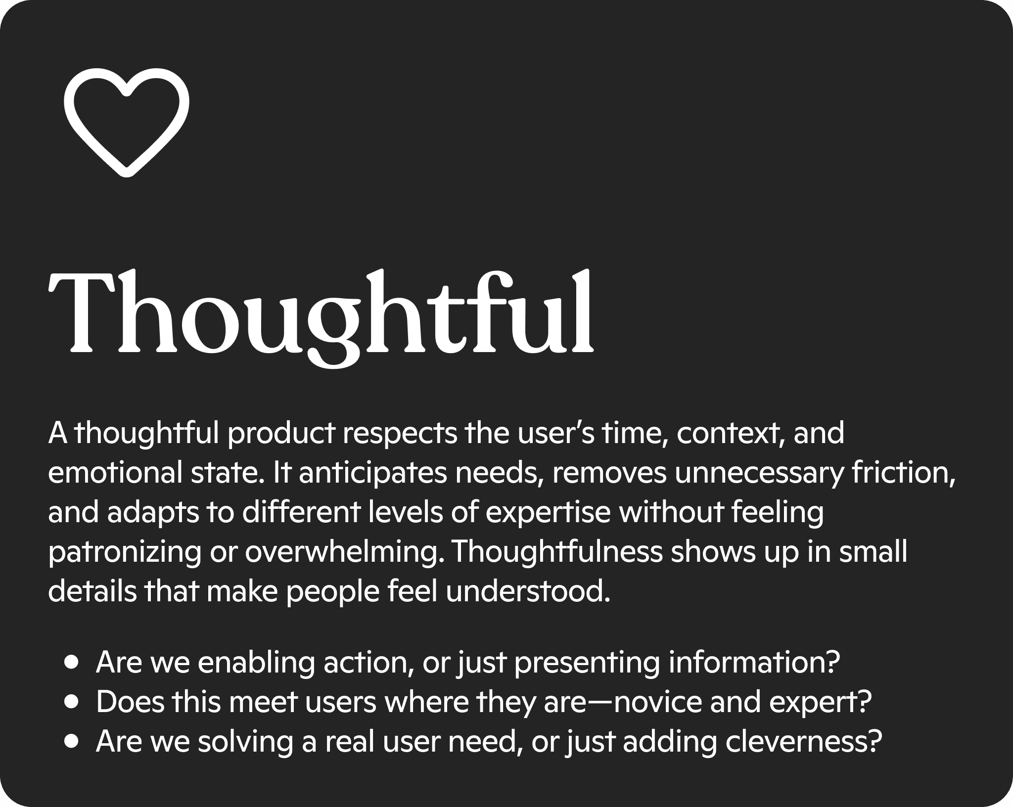 A design system is only as useful as the processes it's a part of. After many interviews and iterations, we harmonized under these 3 product design discipline principles and aimed to exemplify their application through the onboarding workflow.