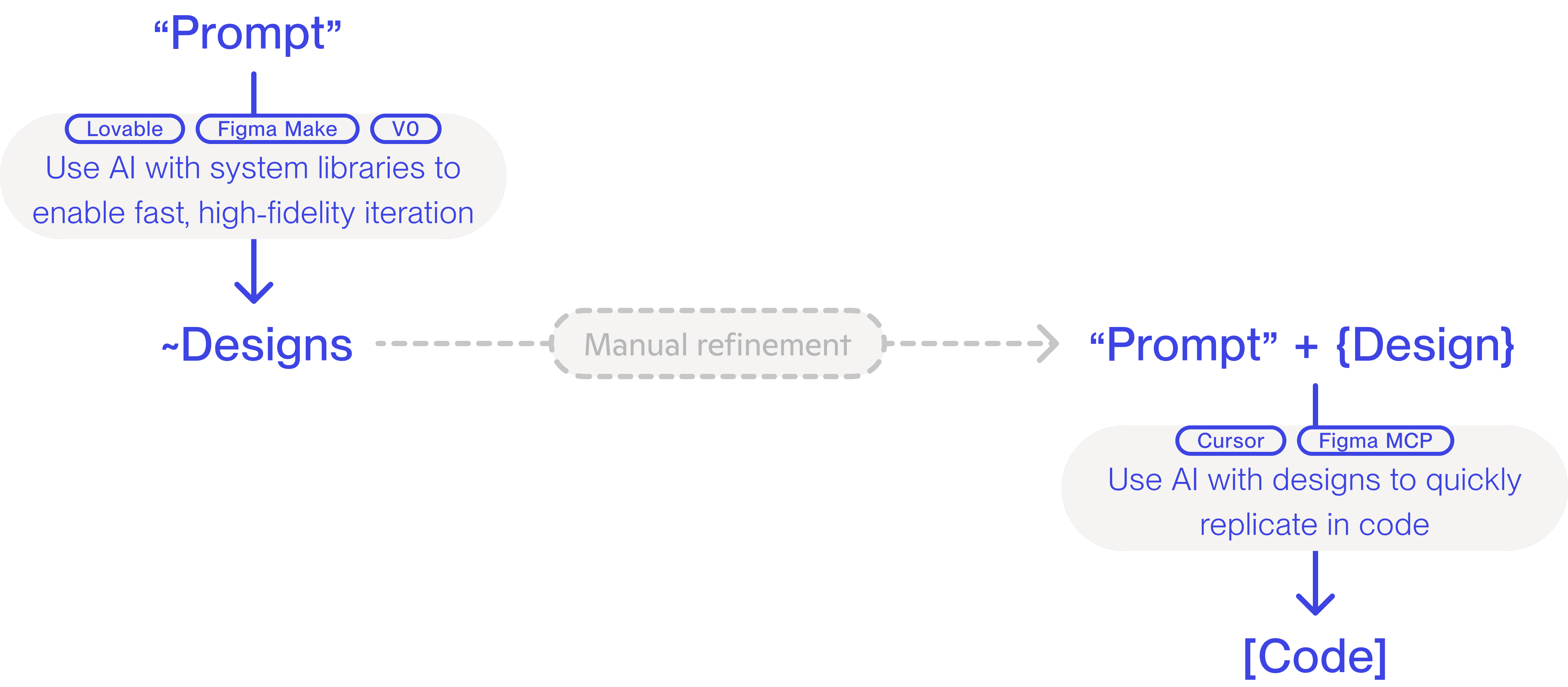 Our design system powers AI tools to generate high-fidelity designs and production-ready code with minimal input. By anchoring AI tools in structured tokens, components, and patterns, we unlock fast, accurate, and scalable workflows.
